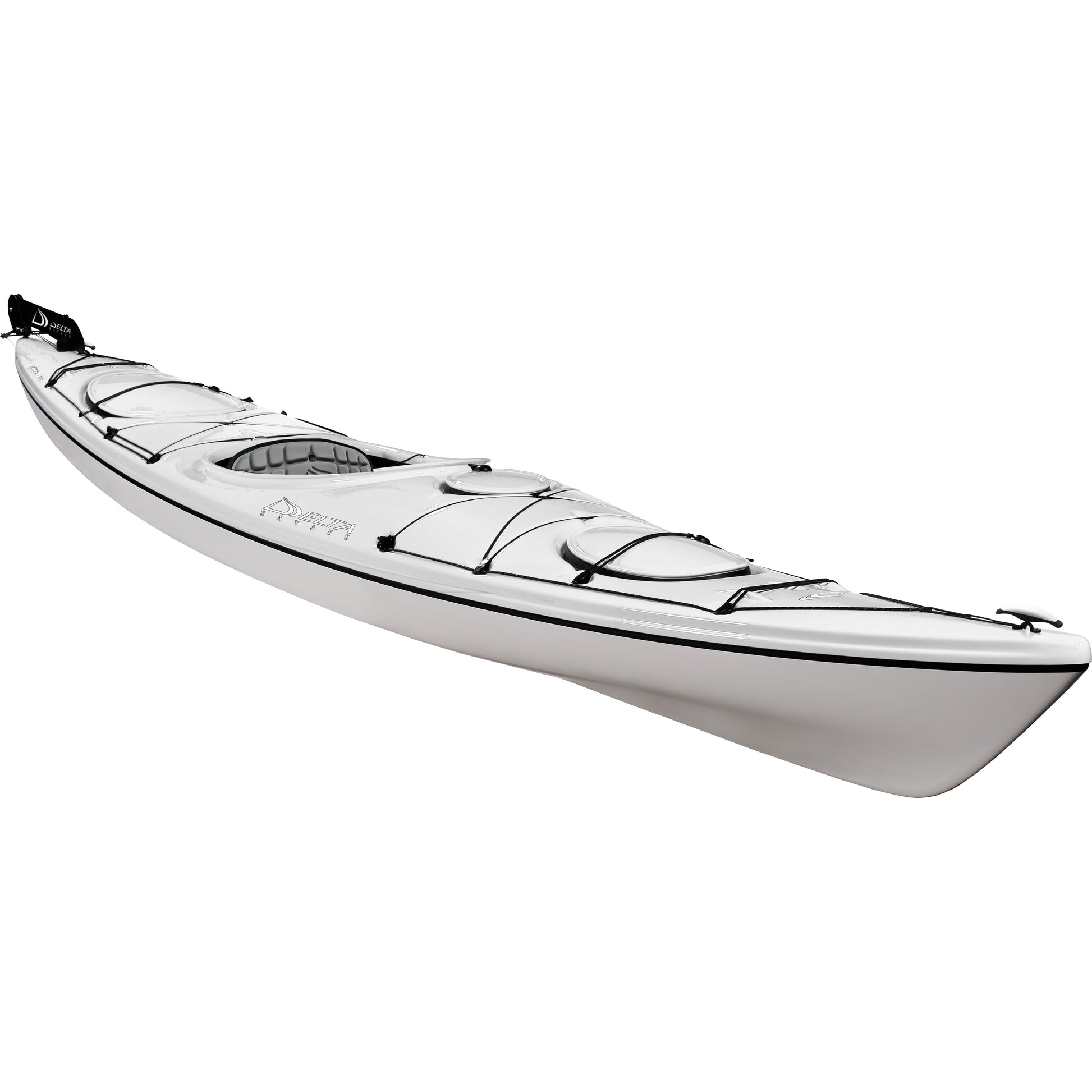 The Delta 14 offers an abundance of features and storage, as well as remarkable maneuverability both on and off the water. With its extended waterline and gentle V-shaped hull, it offers a perfect balance of speed and stability for paddlers of all levels. This touring kayak is designed for use in a variety of conditions and is ideal for both day trips and extended excursions. It also includes Delta's exclusive Press-Lock Hatch System, versatile Contour II Seat System, innovative bungee-risers, and new soft grip handles.